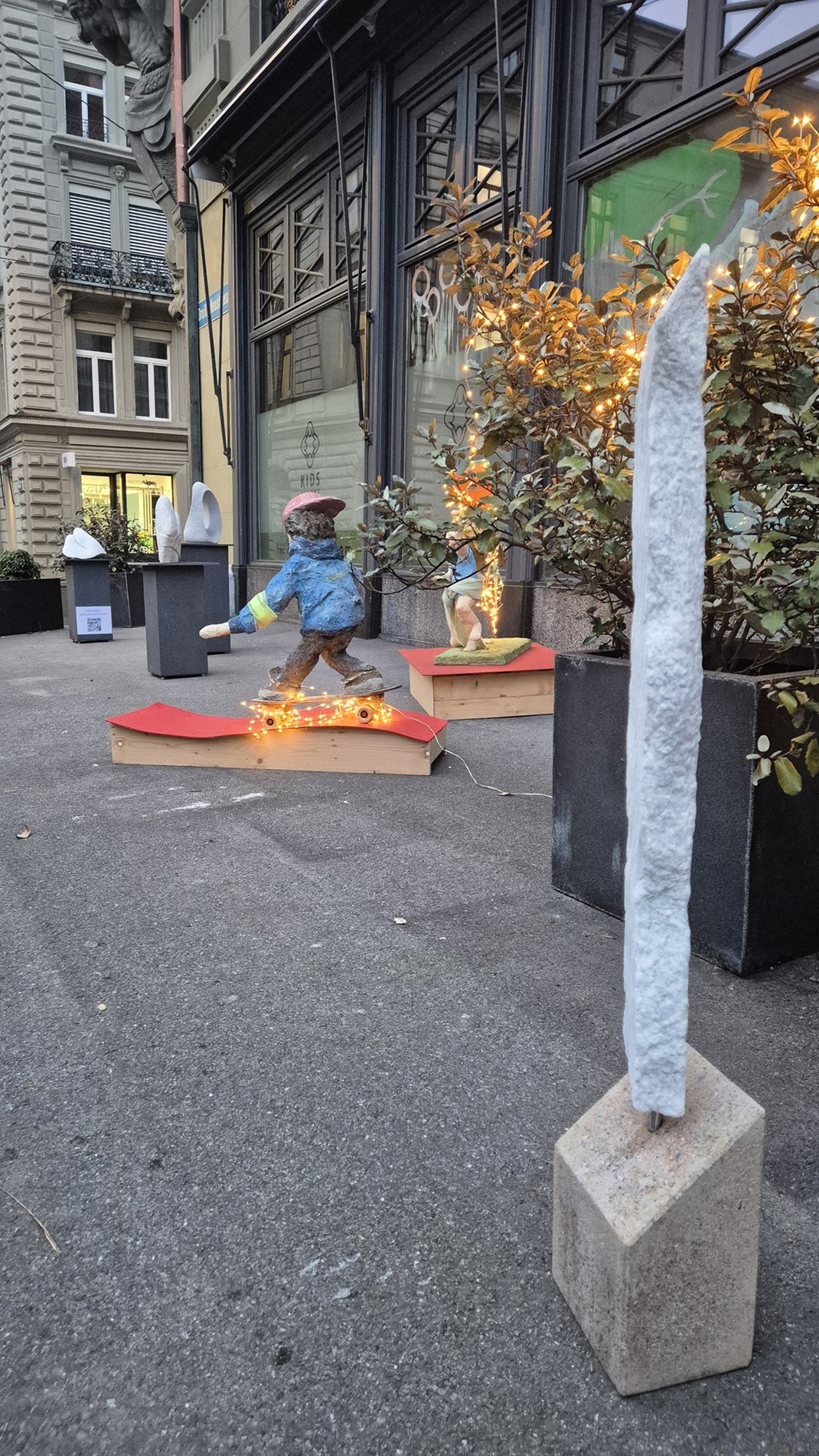 im Gleichgewicht / Junge auf Rollbrett(Zementmasse auf Drahtgeflächt)